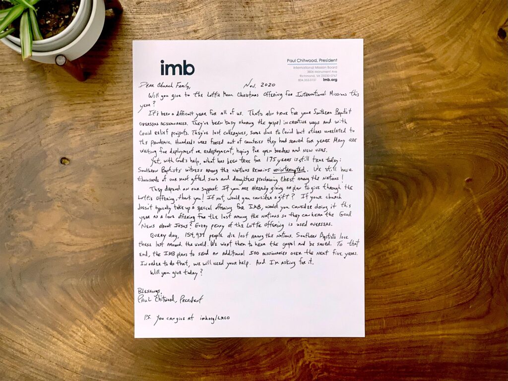 A letter from IMB President Paul Chitwood to Southern Baptist churches